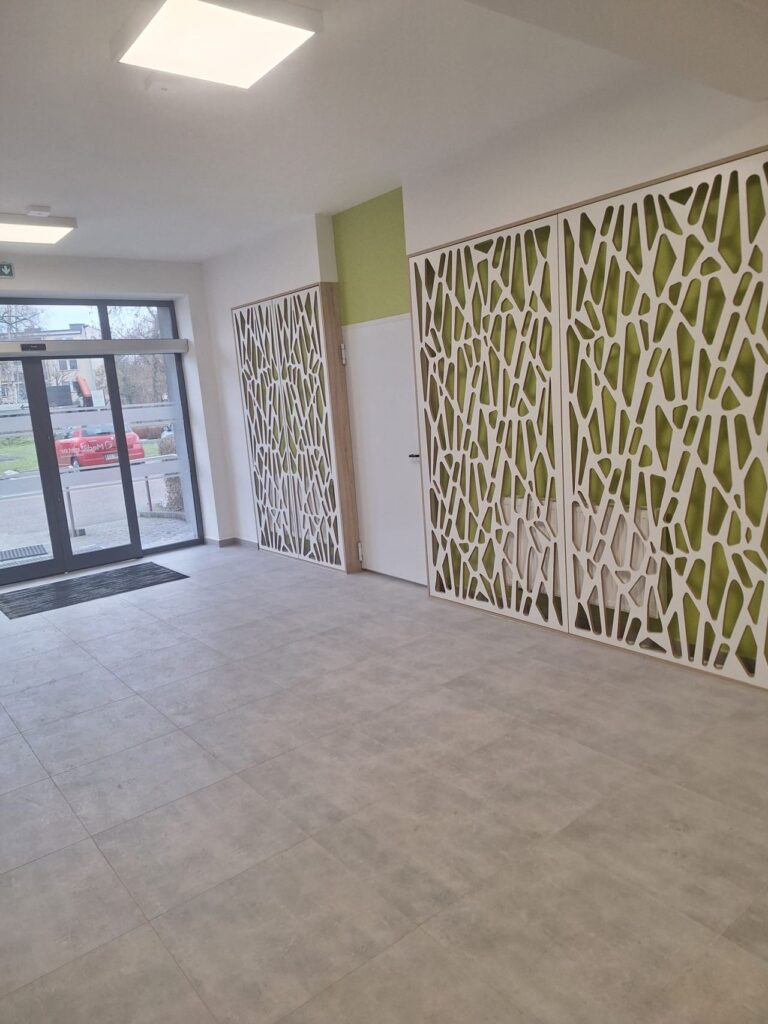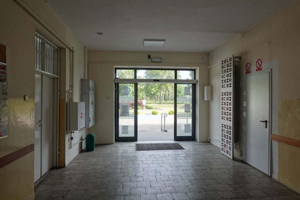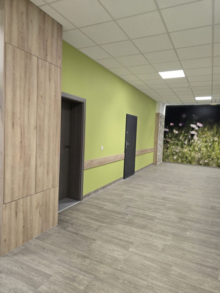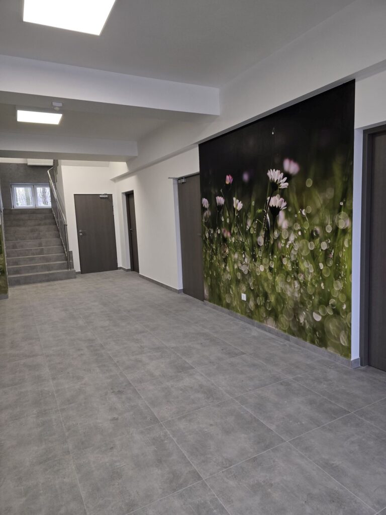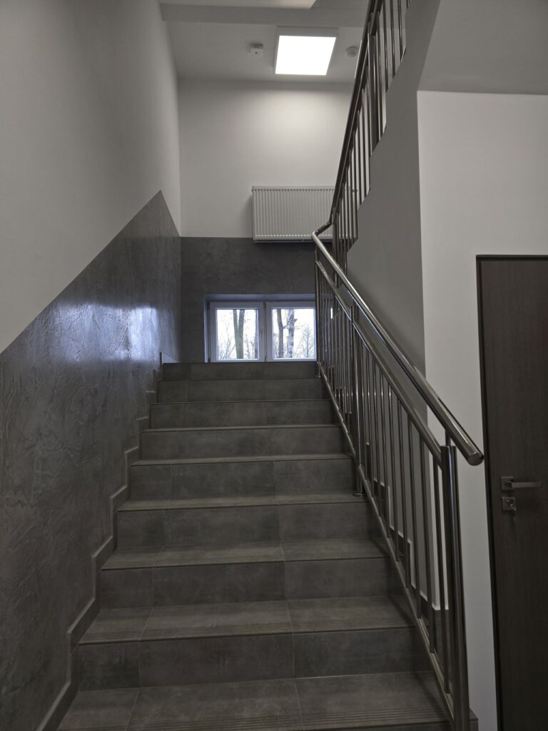 Zadanie obejmowało m.in.: wydzielenie dodatkowego pomieszczenia na parterze pod schodami klatki schodowej, połączenie dwóch małych pomieszczeń przyległych do korytarza na parterze, wymianę okładzin ścian, podłóg, montażu sufitów, wymianę balustrad na klatce schodowej, poszerzenie otworów i wymianę stolarki drzwiowej, wymianę grzejników, przebudowę instalacji elektrycznych, wymianę oświetlenia, zabudowę instalacji, montaż wycieraczek wejściowych oraz wymianę hydrantu i drabinki wyłazowej na korytarzu II kondygnacji.